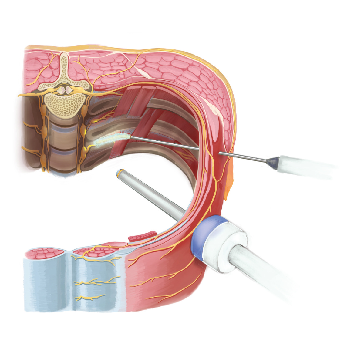 4. ile 9. interkostal aralıklar arasında bilateral olarak 5–6 interkostal sinir hedeflenir.